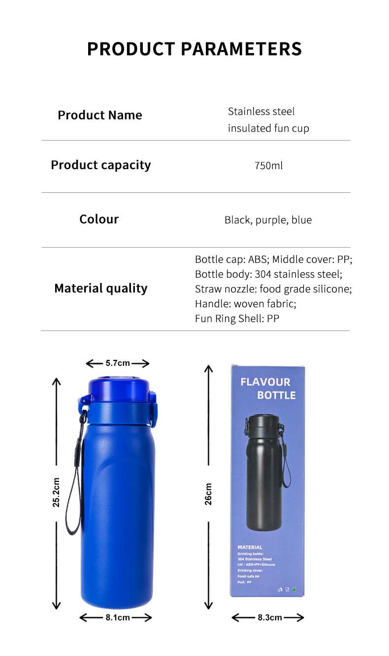 The FlavorMistBottle 304 Stainless Scent Water Bottle features a double-wall insulated design to maintain water temperature and aroma intensity.